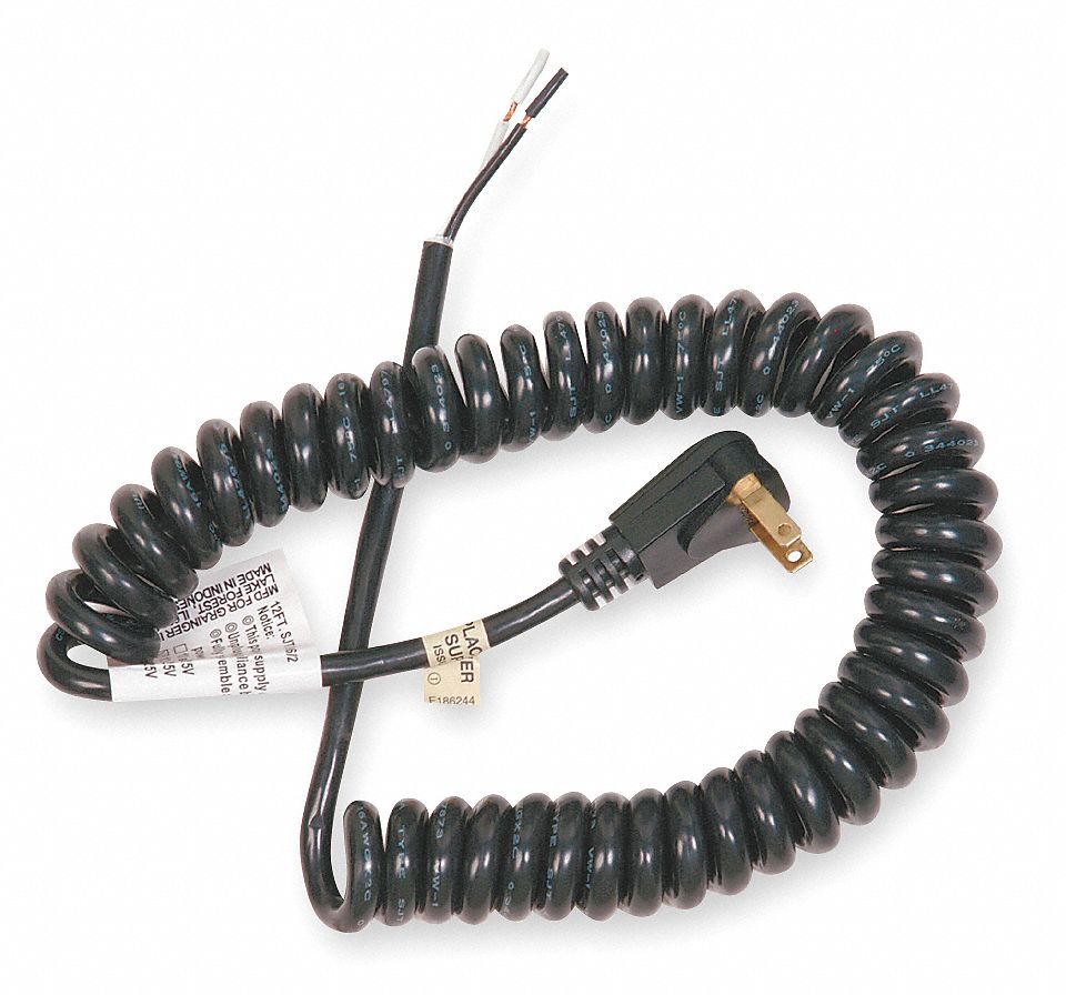 POWER FIRST Coiled Power Cord, 16 AWG, Number of Conductors 2, PVC